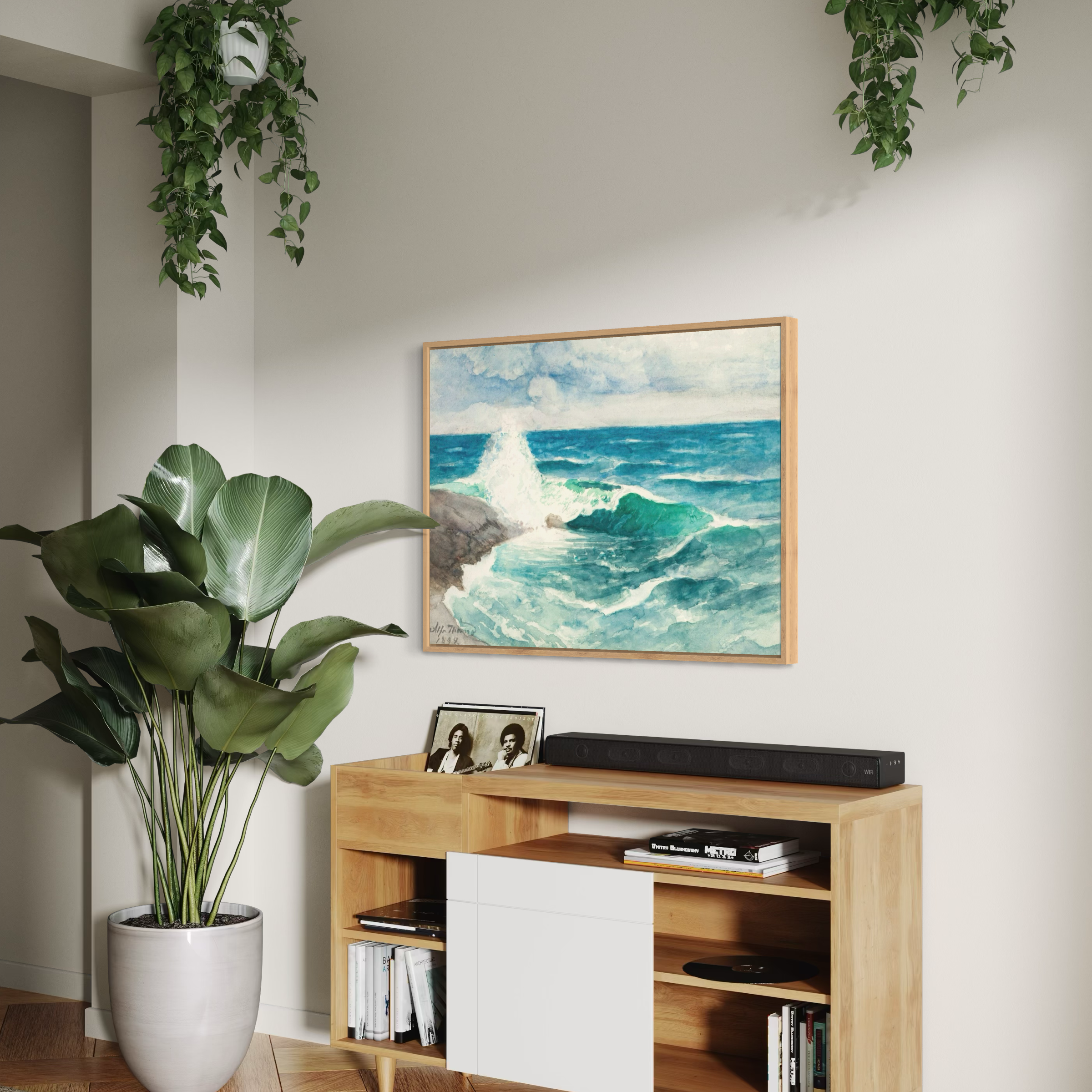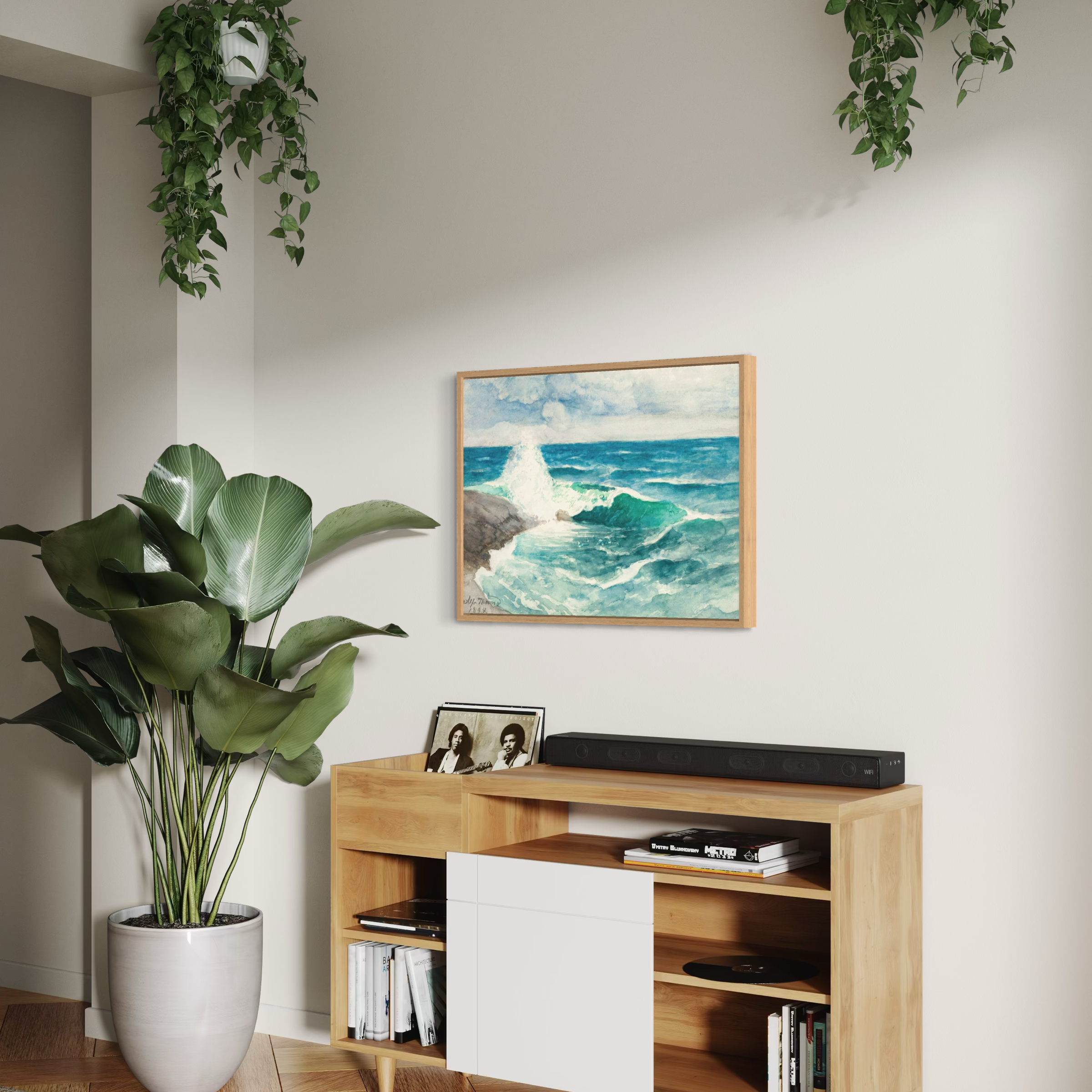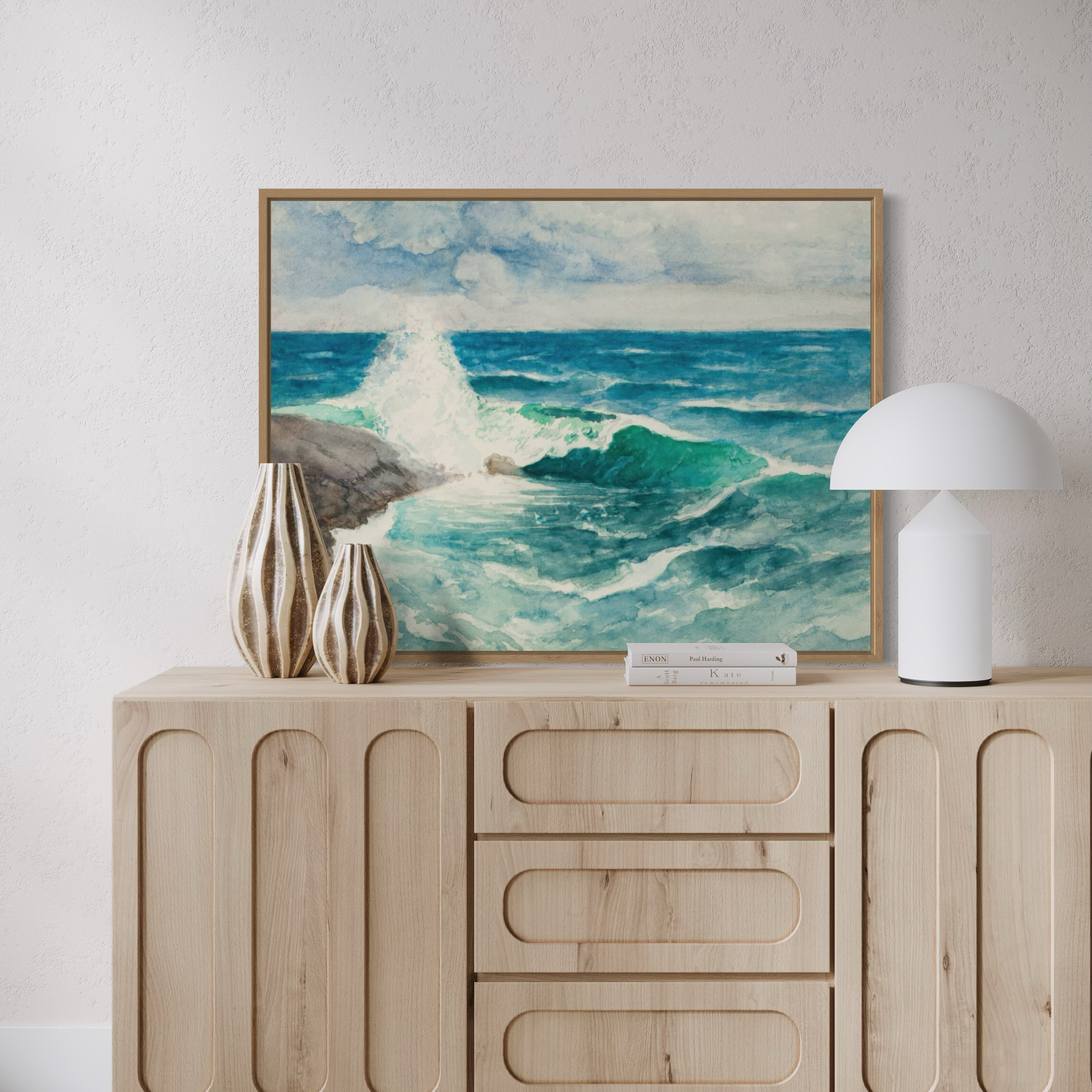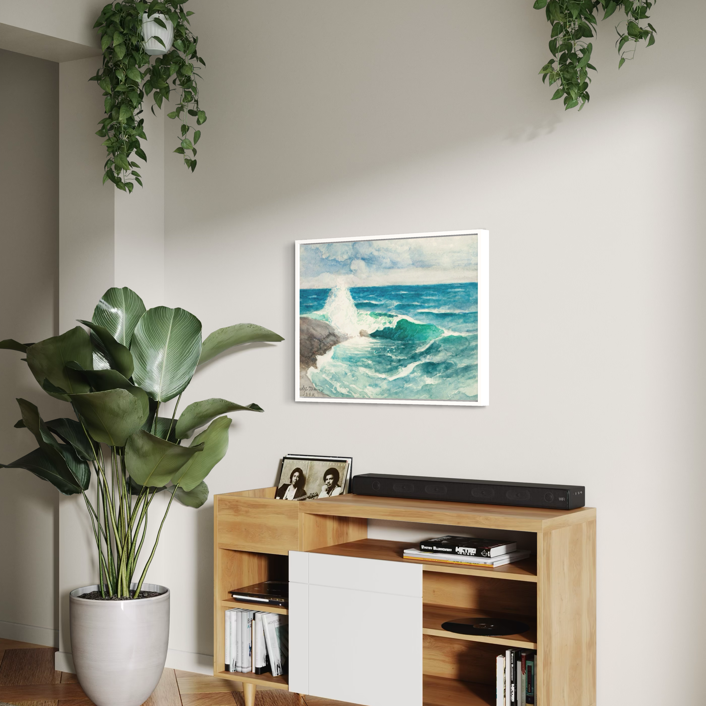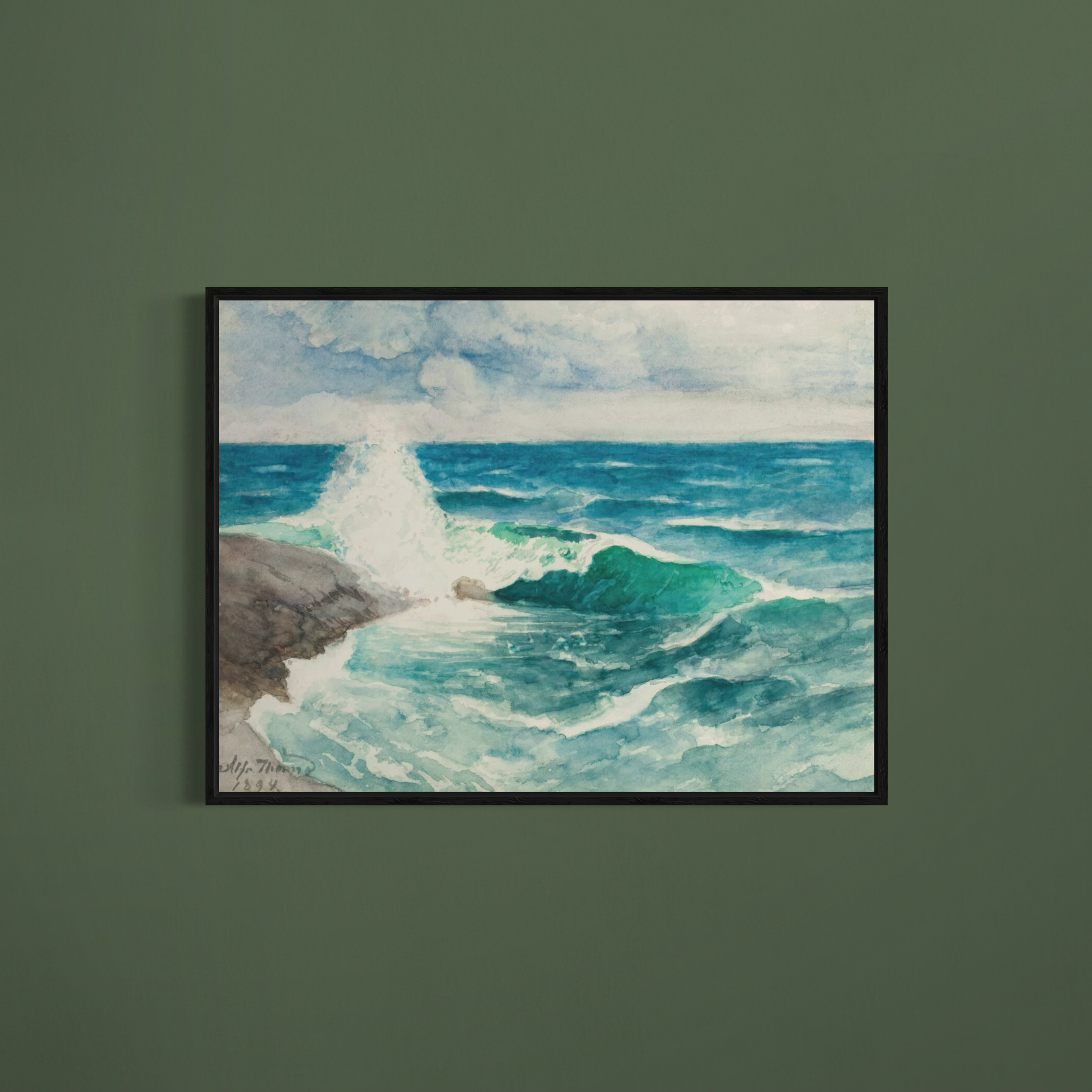 A moody coastal vista by Swedish landscape painter Alfred Thörne, reproduced on gallery-grade canvas and framed in a refined contemporary floating frame. The Braker (1894) evokes the raw drama of the sea: waves surge and break against rocky outcrops under a shifting sky, rendered in Thörne’s precise yet atmospheric brushwork. His subtle tonal palette and naturalistic detail convey both the strength of the coastline and the quiet power of nature. Printed with archival inks and ready to hang.