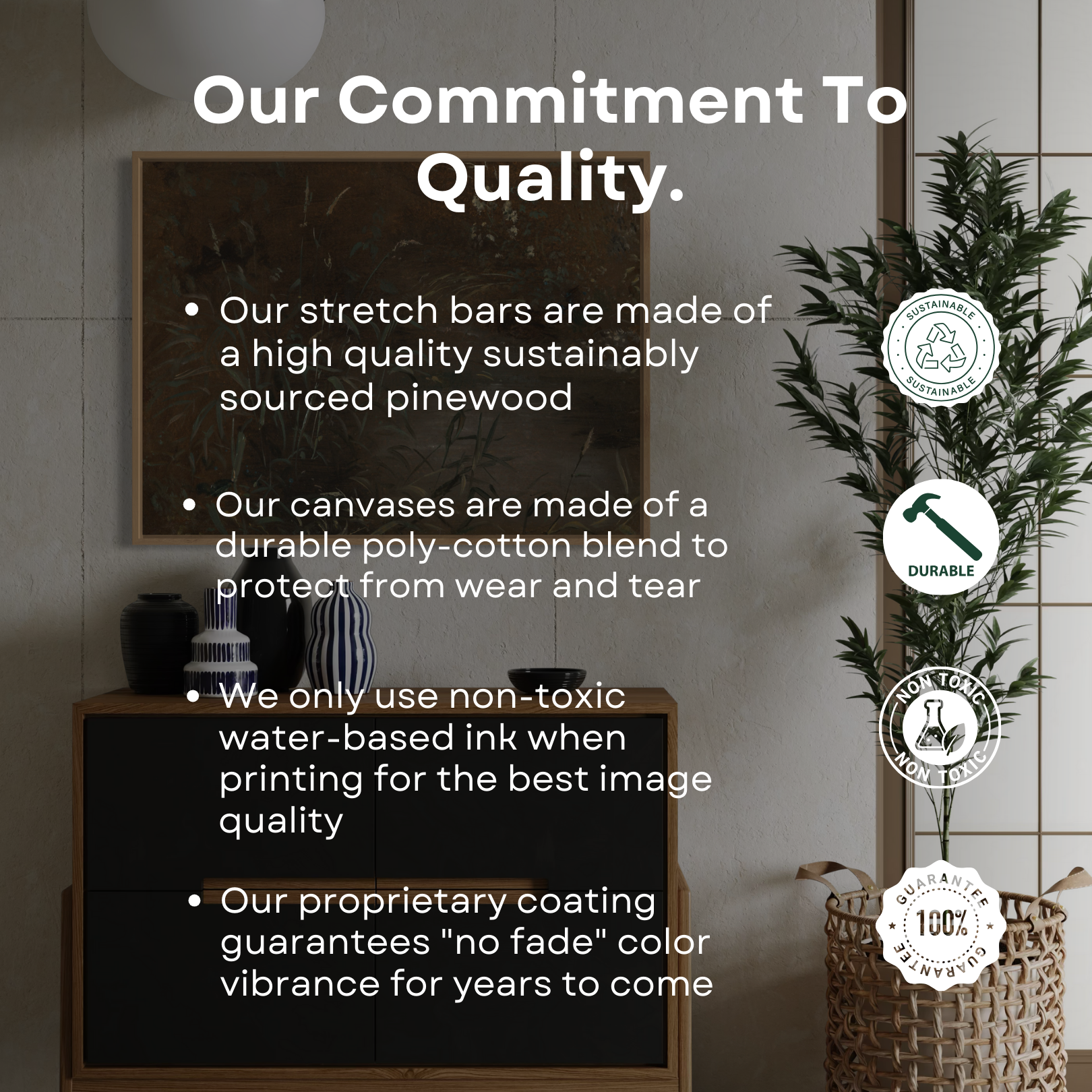 The canvas is stretched over FSC Certified, kiln-dried stretcher bars that are knot-free, finger-jointed, and warp-free, ensuring strength and stability.