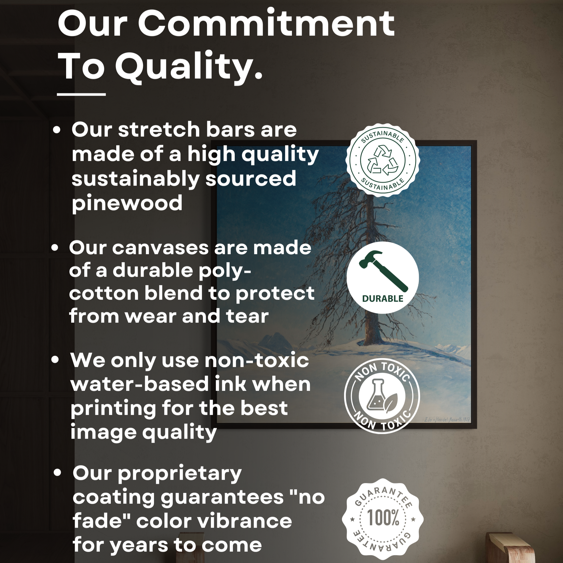 The canvas is stretched over FSC Certified, kiln-dried stretcher bars that are knot-free, finger-jointed, and warp-free, ensuring strength and stability.