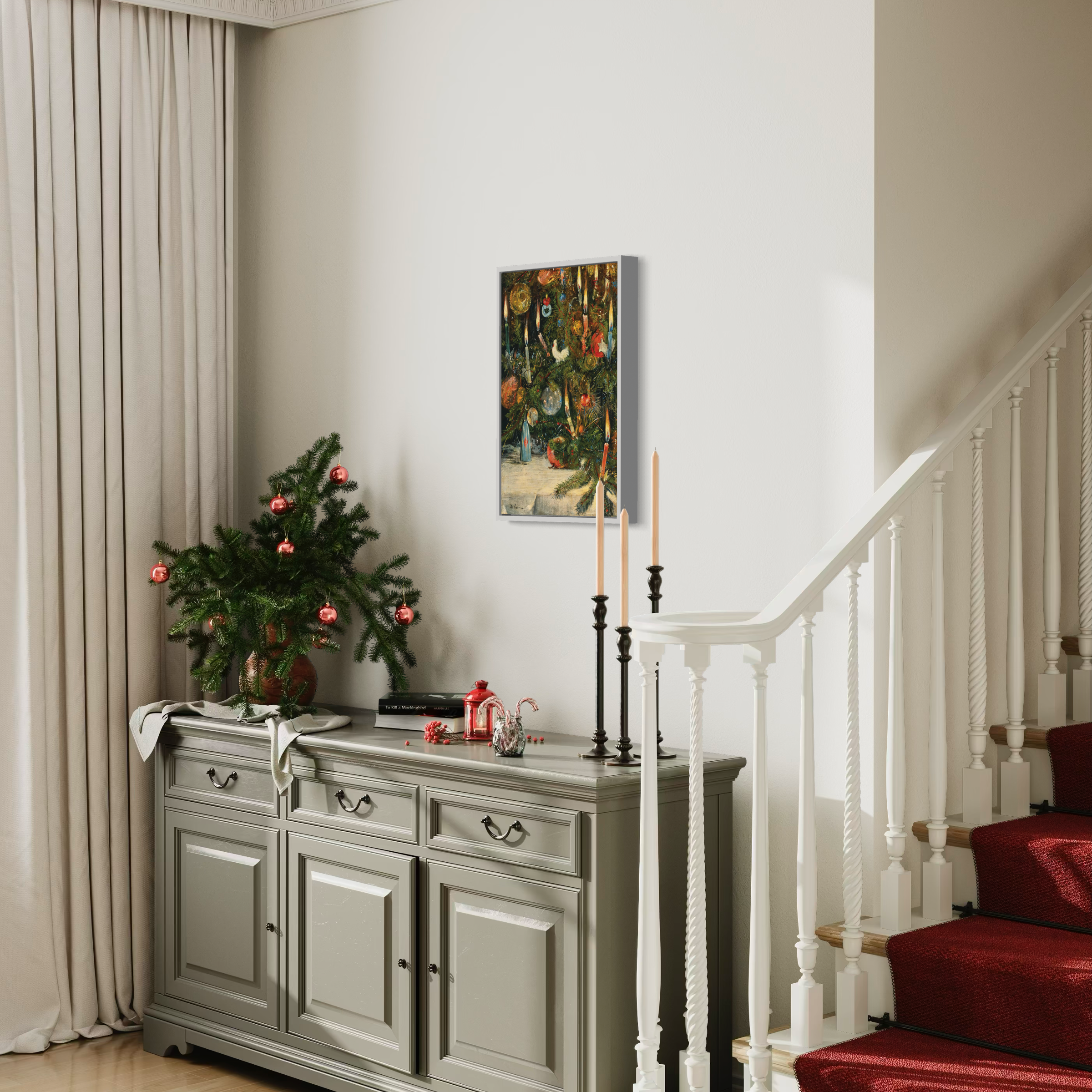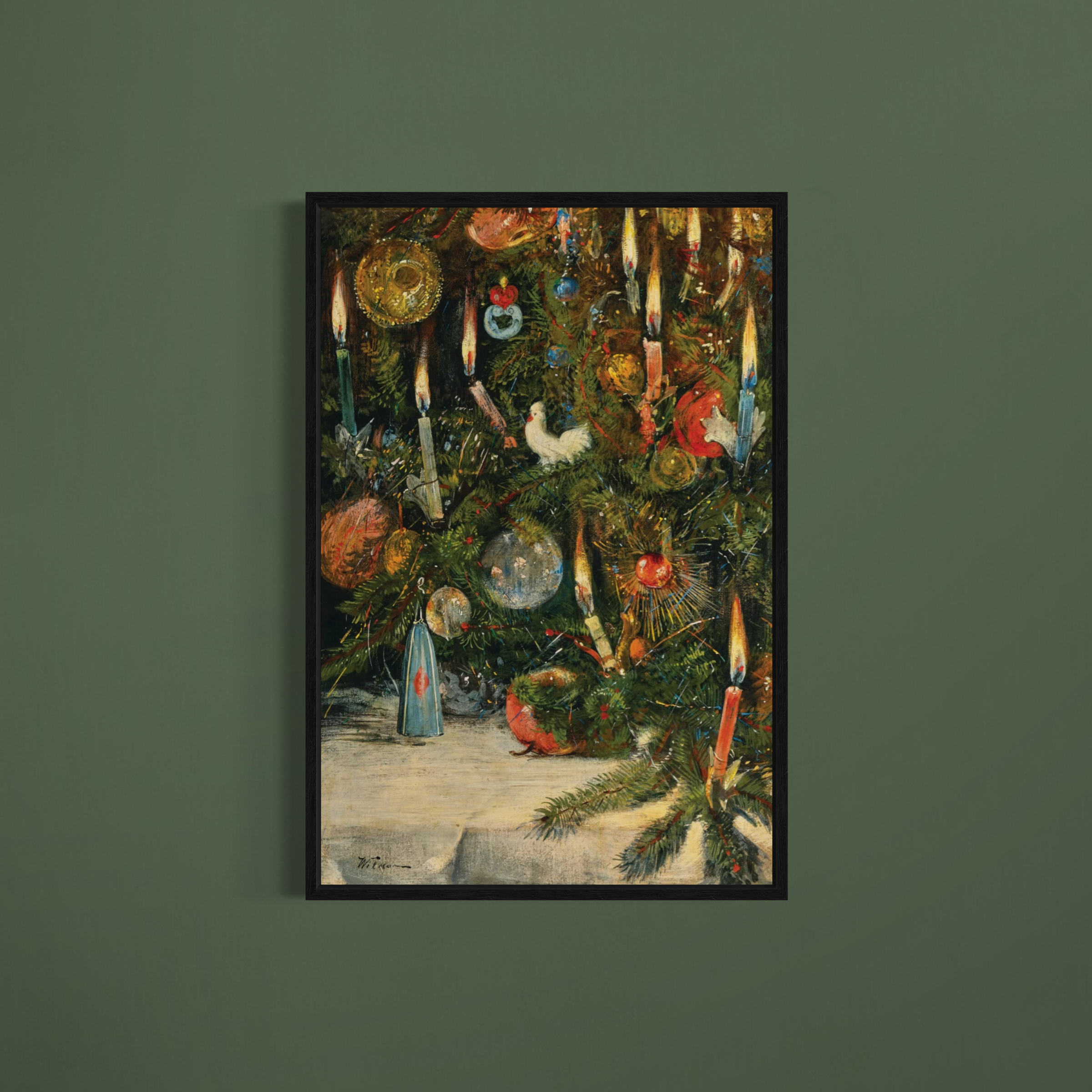 A nostalgic holiday scene by German artist Rudolf Bernhard Willmann, reproduced on gallery-grade canvas and set in a classic floating frame. Christmas Tree Decorated with Lights glows with warmth and tradition, depicting a radiant tree adorned with candles and ornaments. Rich in color and sentiment, the piece evokes the timeless joy and wonder of a festive winter evening. Printed with archival inks and ready to hang.