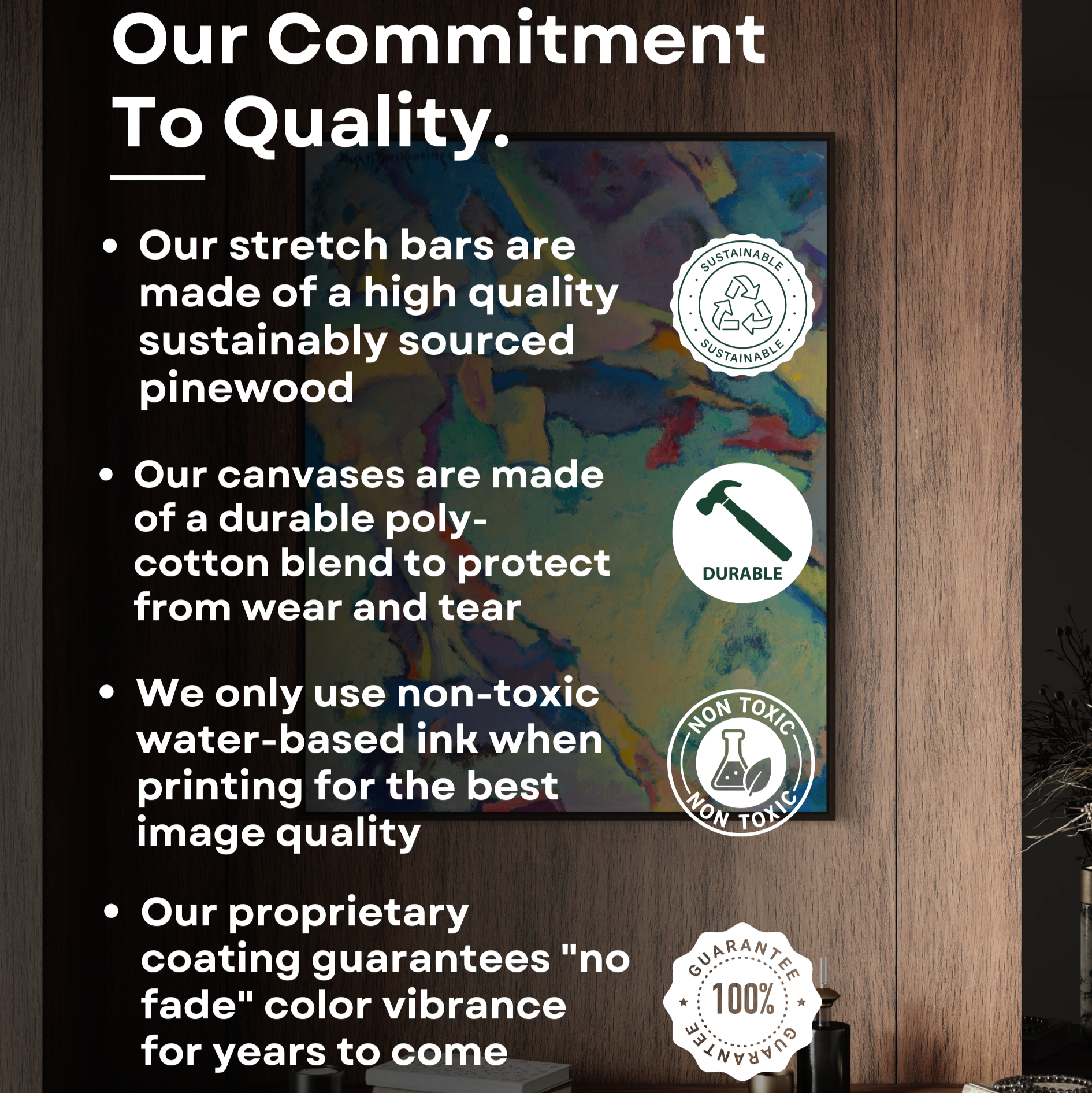 The canvas is stretched over FSC Certified, kiln-dried stretcher bars that are knot-free, finger-jointed, and warp-free, ensuring strength and stability.